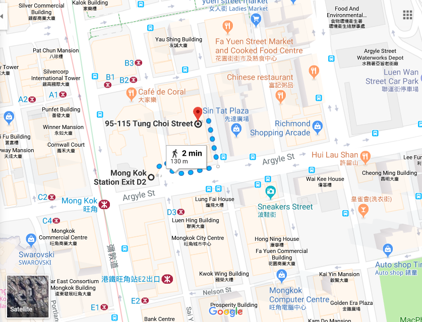 Directions from MTR exit to Building Mong Kok Take Mong Kok Station Exit D2. Head north on Sai Yeung Choi St S toward Argyle St for 10 m Sharp right onto Argyle St for 66 m Turn left onto Tung Choi St Destination will be on the left