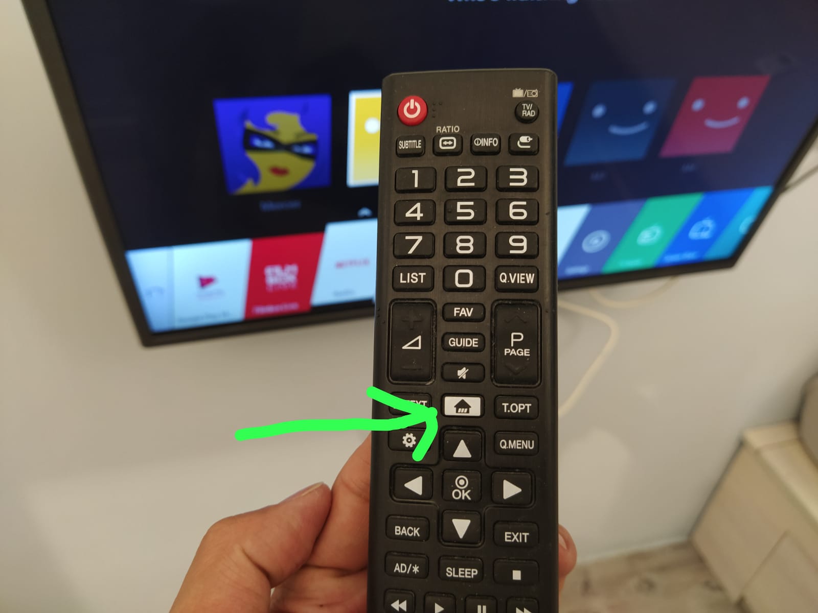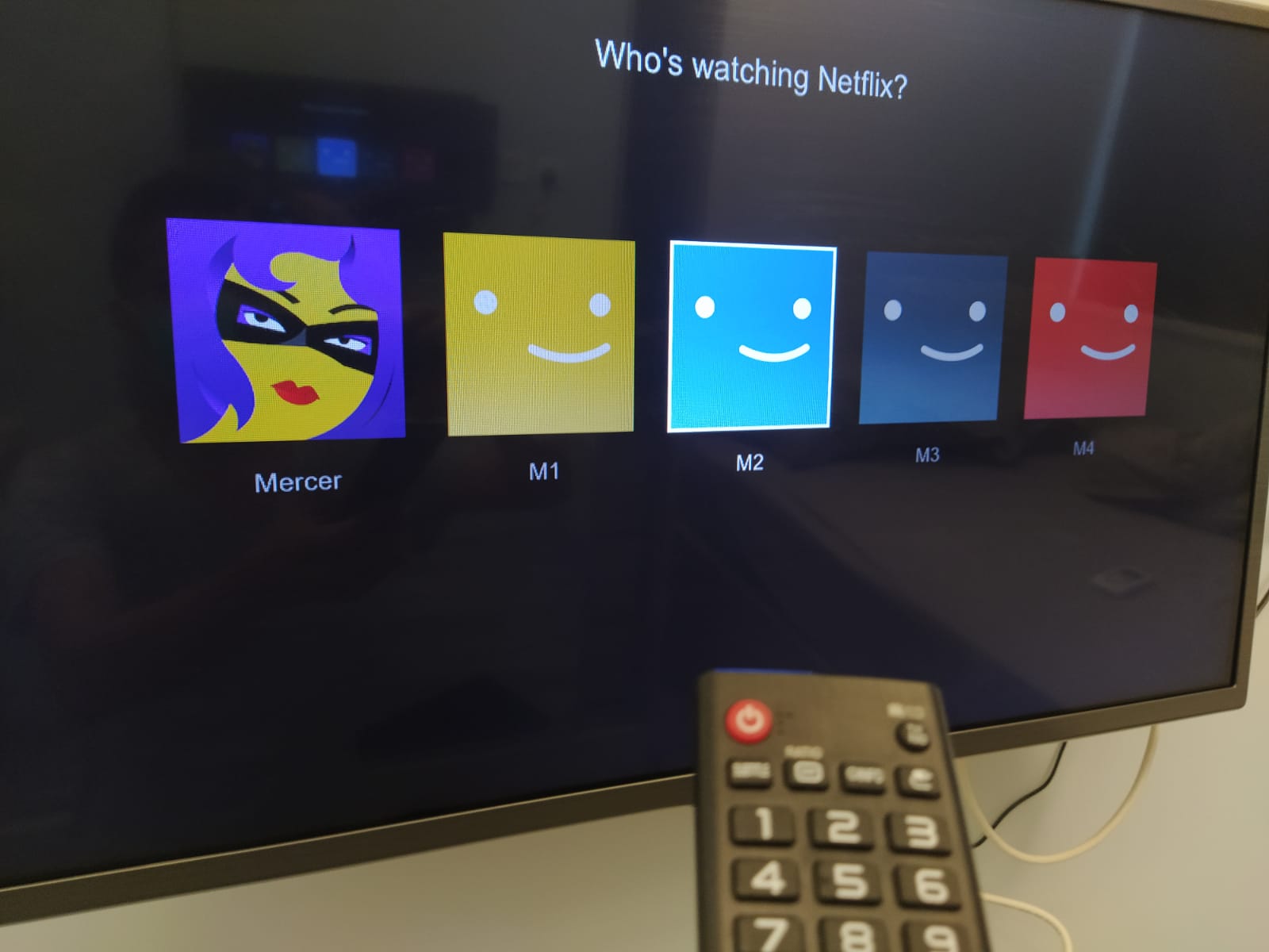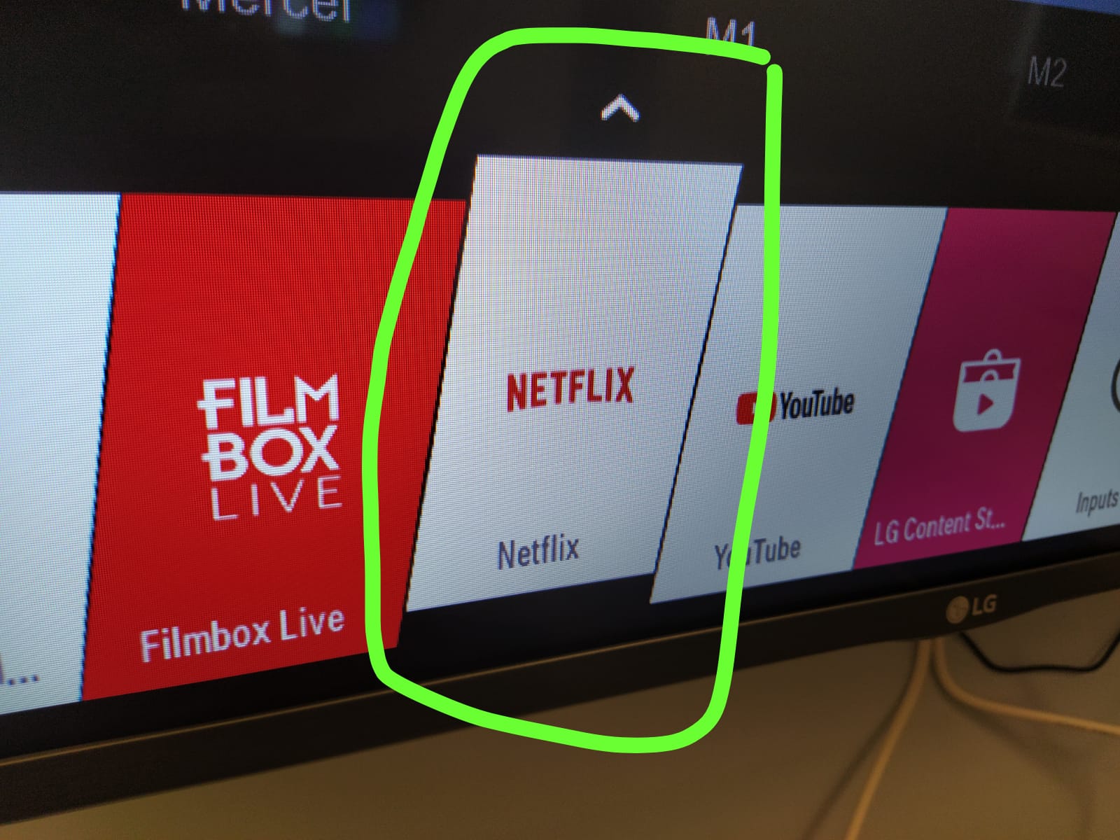 1. When turn on the LG TV, press the house like button 2. Then will have this pop up menu comes out on screen 3. Then press the left or right arrow to move the menu to Netflix 4. Chose Netflix icon 5. Then press OK to confirm 6. Then choose the one Netflix acct belongs to the tenants apt unit. Like M1B by chosing M1