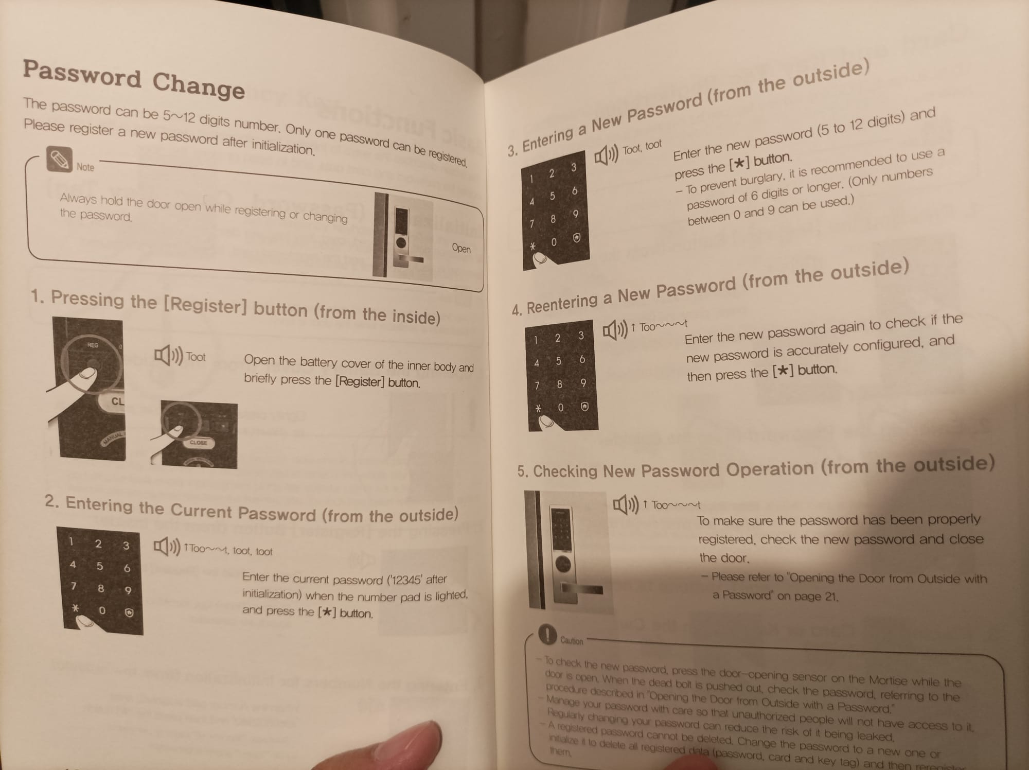 Instructions on how to change door code (Samsung lock) Press the button here , press current door code * , new door code * , new door code*